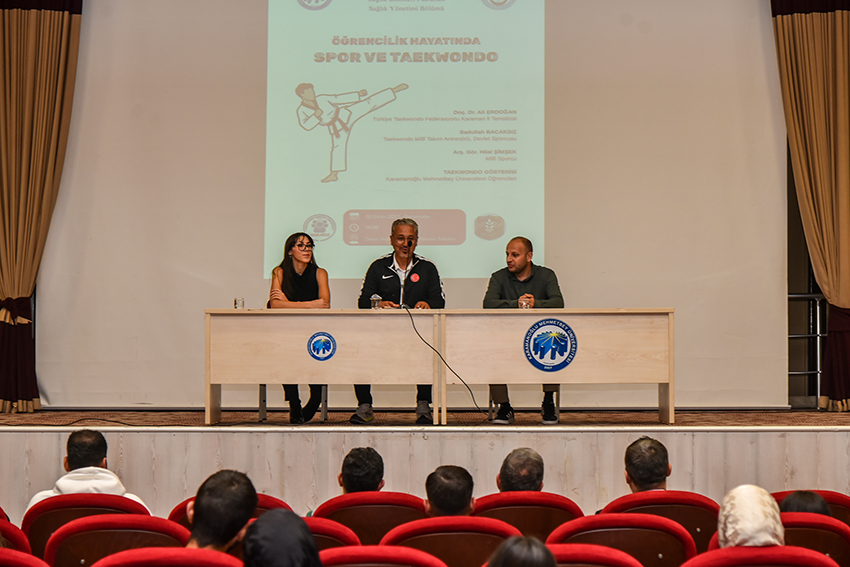 Karamanoğlu Mehmetbey Üniversitesi (KMÜ) Sağlık Bilimleri Fakültesi Sağlık Yönetimi Bölümü tarafından düzenlenen ve Sağlık Yönetimi Topluluğu ile Liderlik Atölyesi Topluluğu tarafından organize edilen “Öğrencilik Hayatında Spor ve Taekwondo” etkinliği, öğrenci ve akademisyenlerin yoğun katılımıyla gerçekleştirildi. Programa, Rektör Prof. Dr. Mehmet Gavgalı da katıldı.