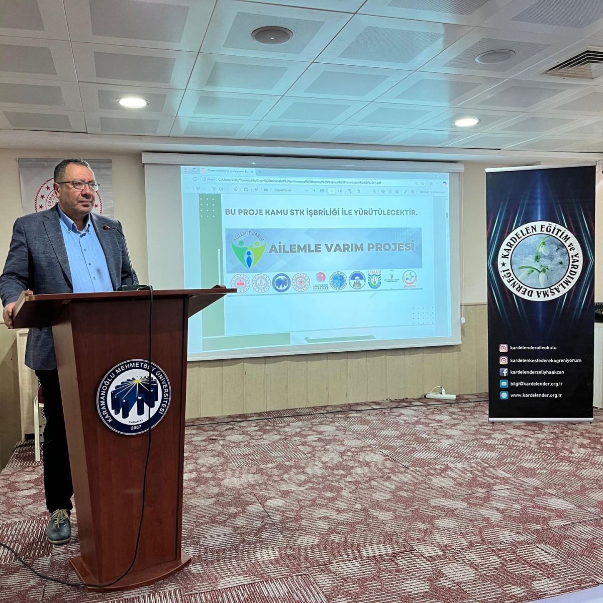 18 Ocak 2025 tarihinde, Kardelen Eğitim ve Yardımlaşma Derneği'nin ev sahipliğinde Türkiye genelinde ailelerin sağlıklı, mutlu ve bilinçli bir yaşam sürmelerini desteklemek amacıyla başlatılan İçişleri Bakanlığı Sivil Toplumla İlişkiler Genel Müdürlüğü tarafından 2024-M-500 protokol nolu “Ailemle Varım Projesi”ne Karamanoğlu Mehmetbey Üniversitesi Sosyal Hizmet Bölümü olarak destek verdik. Ortaklığını yürüttüğümüz projede verimli etkinliklerle aileyi tehdit eden unsurlara dikkat çekmek, söz konusu unsurlara yönelik baş etme becerisi kazandırmak ve zorluk yaşayan grupları desteklemek amaçlandı.