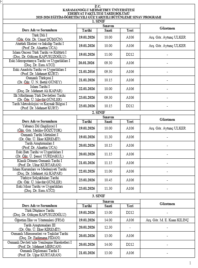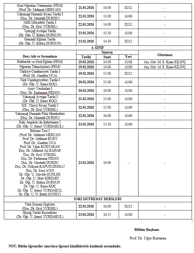 2025-2026 Güz Dönemi Lisans Eğitimi Bütünleme Sınav Programı