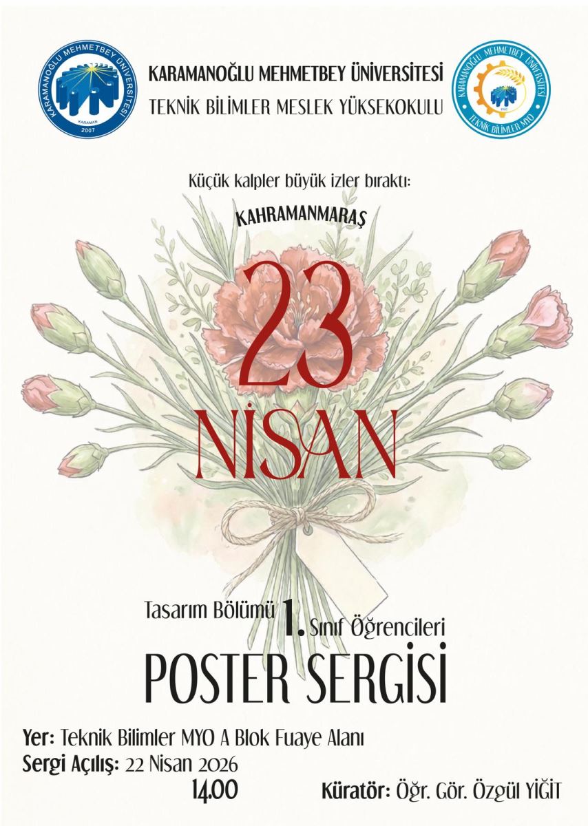"Küçük Kalpler Büyük İzler Bıraktı: Kahramanmaraş" temasıyla düzenlenen sergi, son zamanlarda yaşanan hain saldırılarda hayatını kaybeden çocuklarımızın ve öğretmenimizin anısına ithaf edilecektir. Öğrencilerimizin duygu yüklü tasarımlarından oluşan sergi, 22Nisan 2026 Çarşamba günü saat 14.00'te Teknik Bilimler MYO A Blok Fuaye Alanı'nda sanatseverlerle buluşacaktır.