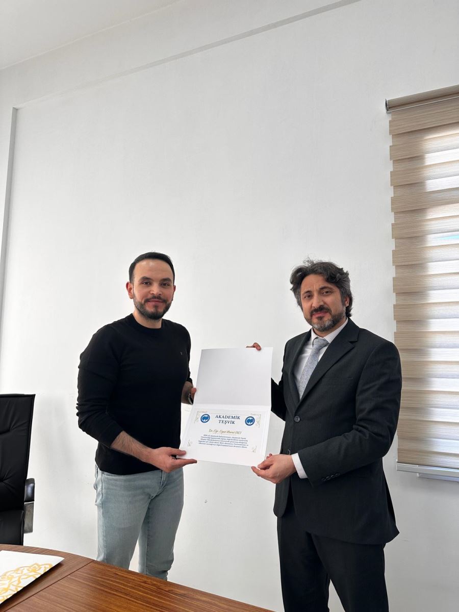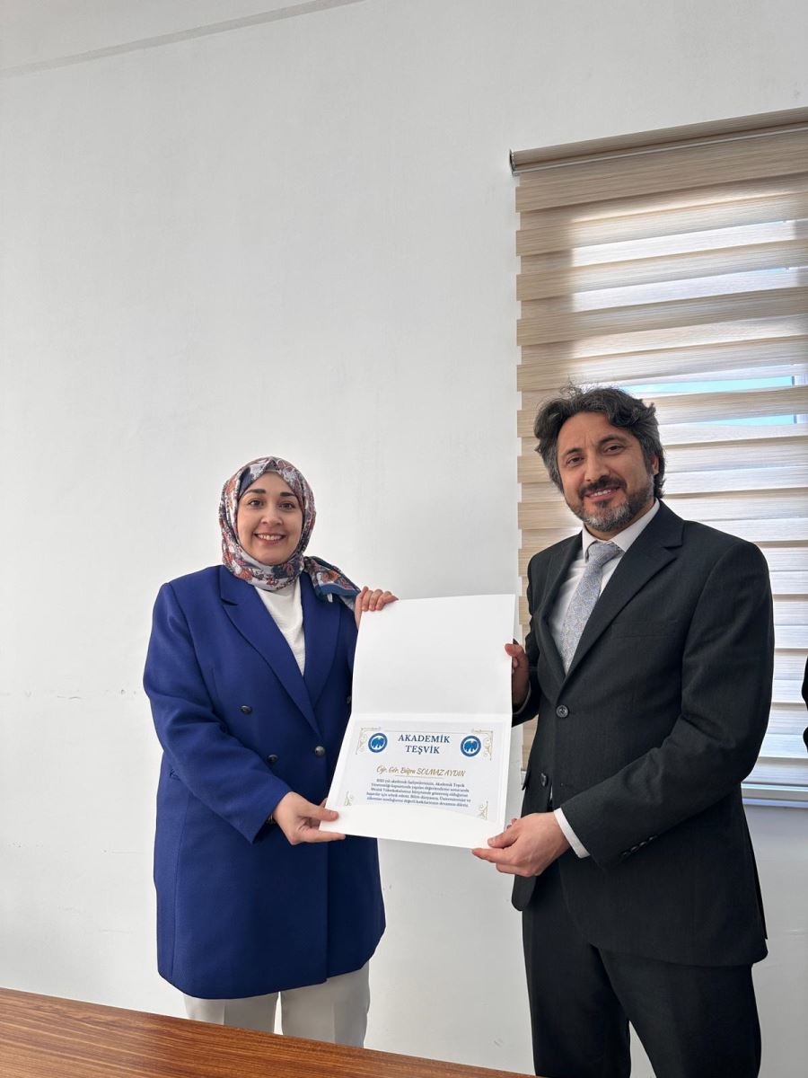 Akademik Kurul toplantımızda Akademik Teşvik almaya hak kazanan ve akademik unvanlarında yükselerek yeni görevlerine atanan öğretim üyelerimize belgeleri Rektör Yardımcımız Sayın Prof. Dr. Murat MAYDA tarafından takdim edildi. Değerli akademisyenlerimizi başarılarından dolayı tebrik eder, kurumumuza sundukları katkılardan ötürü teşekkür ederiz.