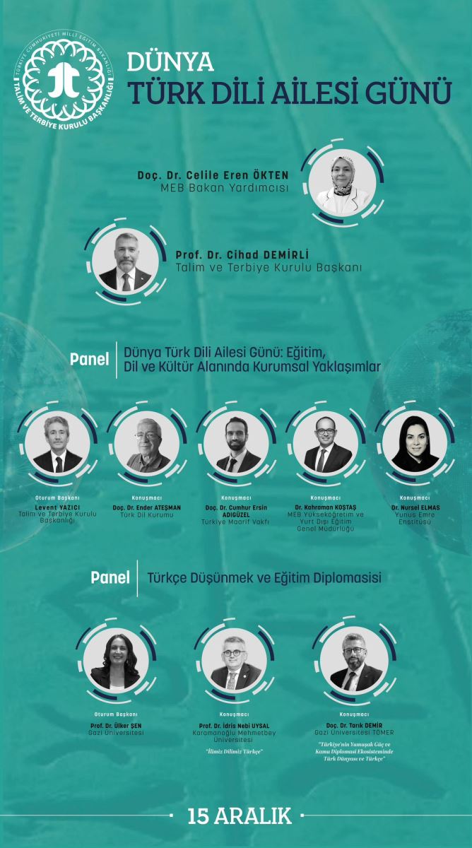 Karamanoğlu Mehmetbey Üniversitesi Rektör Yardımcısı ve bölümümüz öğretim üyesi Prof. Dr. İdris Nebi UYSAL, "Dünya Türk Dili Ailesi Günü" kapsamında MEB Talim ve Terbiye Kurulu Başkanlığı tarafından Ankara'da düzenlenen iki oturumluk panele konuşmacı olarak katıldı.